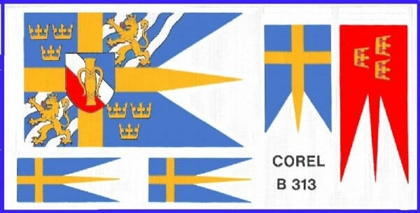 3 of Blue, Red & Yellow Pennants – Length 44mm, Lions & Crowns 70mm x 130mm, and a Pennant – Length 80mm