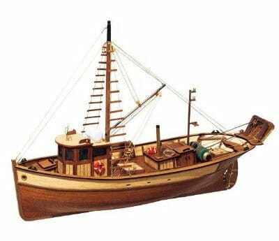 Il kit è completo di tutte le parti, i raccordi, i tasselli e i legni. La costruzione dello scafo è a doppia tavola su paratia. Le istruzioni per la costruzione sono in inglese con foto a colori.