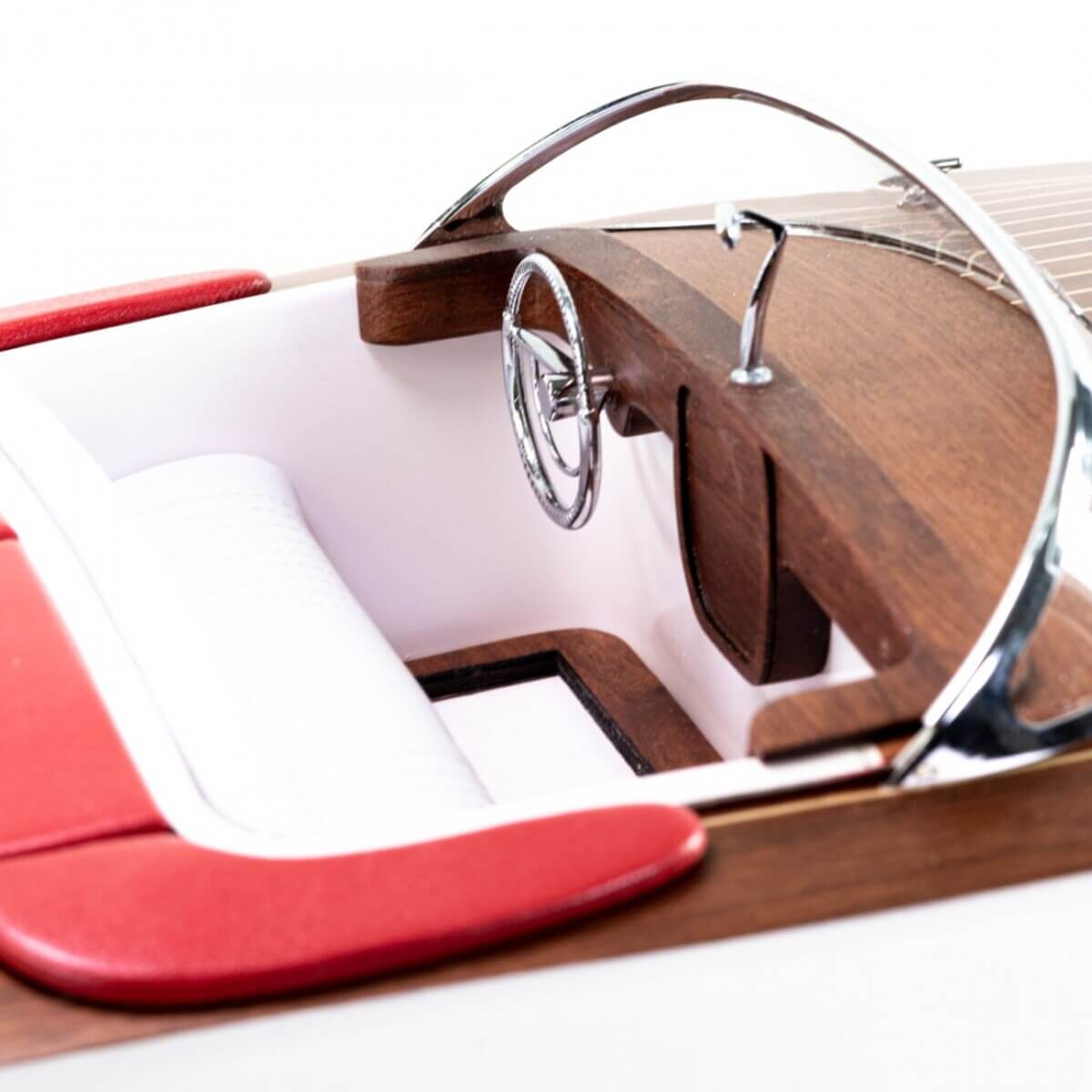 The kit contains simulated leather seats, cockpit with steering wheel, chromed fittings and assembly instructions. Note: Wooden base is not included in the kit.