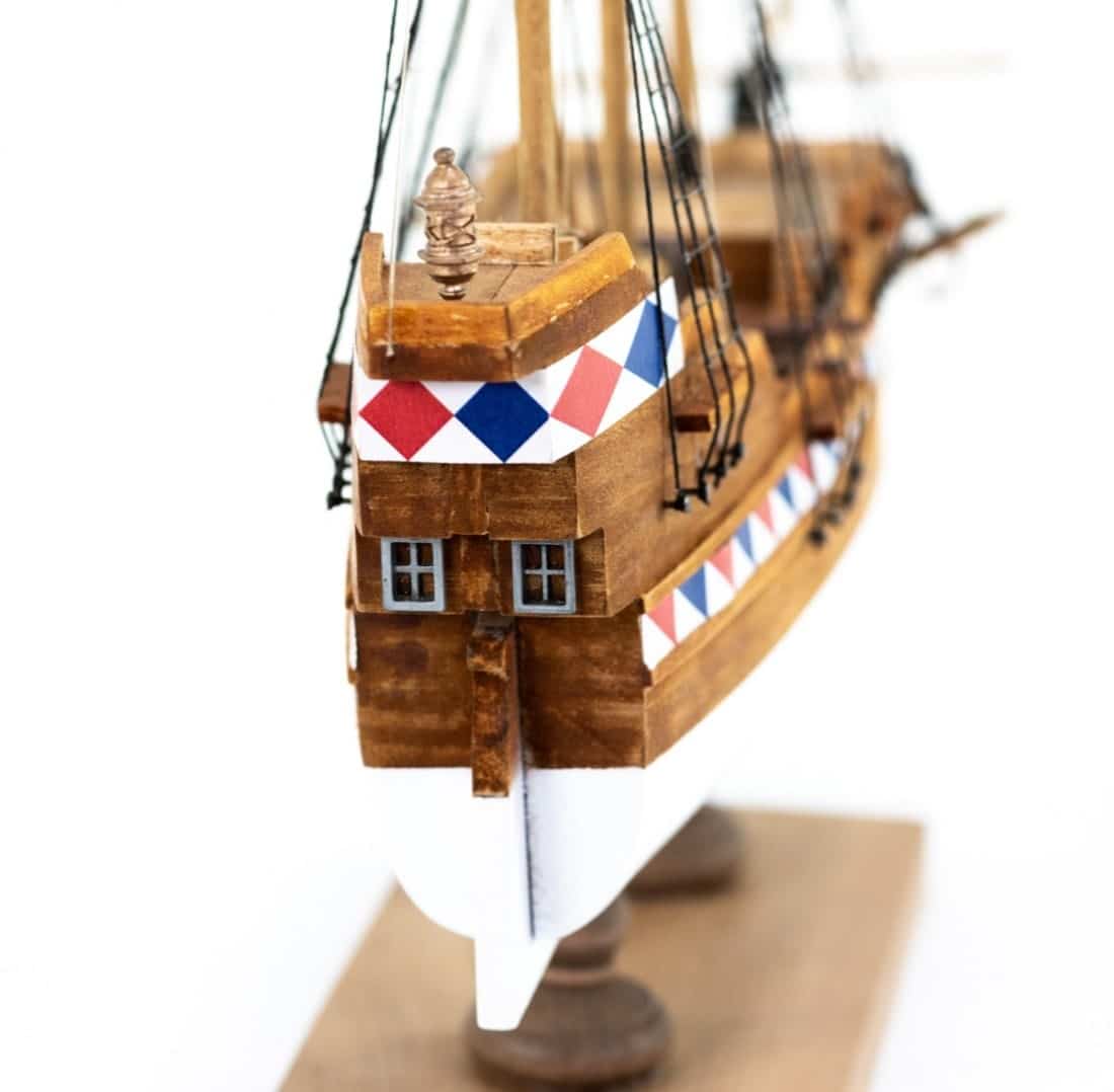 The Galleon is the ship that more than others lets ones imagination run free. Each of these ships can carry treasures or secrets, sail gracefully on the sea and suddenly change itself in a pirate vessel, as the Revenge of Sir Francis Drake. Galleons stand out for their impressive lines and their majestic aft castle. The colorful decorations all along both sides are another distinctive feature of this kind of vessel.