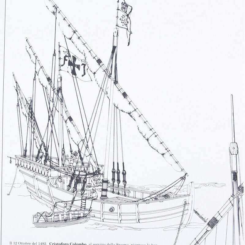 Nina was a classic caravel with pure lateen rigging, with hanging sails in the middle point of the lateen yard and with shrouds hooked to ship?s broadside. It had no forecastle and it had a small quarter-deck. Christopher Columbus, St. Mary?s captain in the first historical expedition, took the next Atlantic passage with Nina, which had a particularly strong construction, but with reduced a length (a little shorter than 20 metres) at the mercy of the waves.
