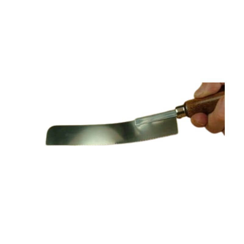 The teeth on this flexible blade have no set so they will cut dowels, pegs and plugs flush without marring work surface. Cuts on the ‘pull’ stroke.