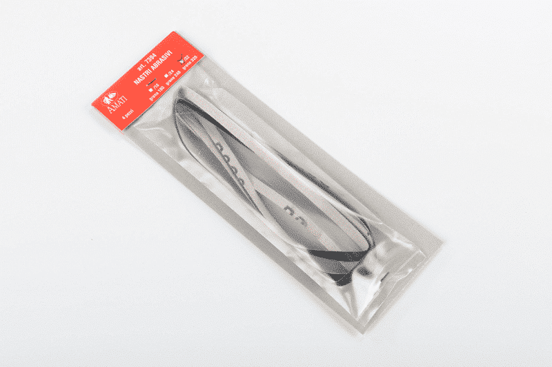 A packet of four Fine grade sanding belts for Contour sander by Amati.
