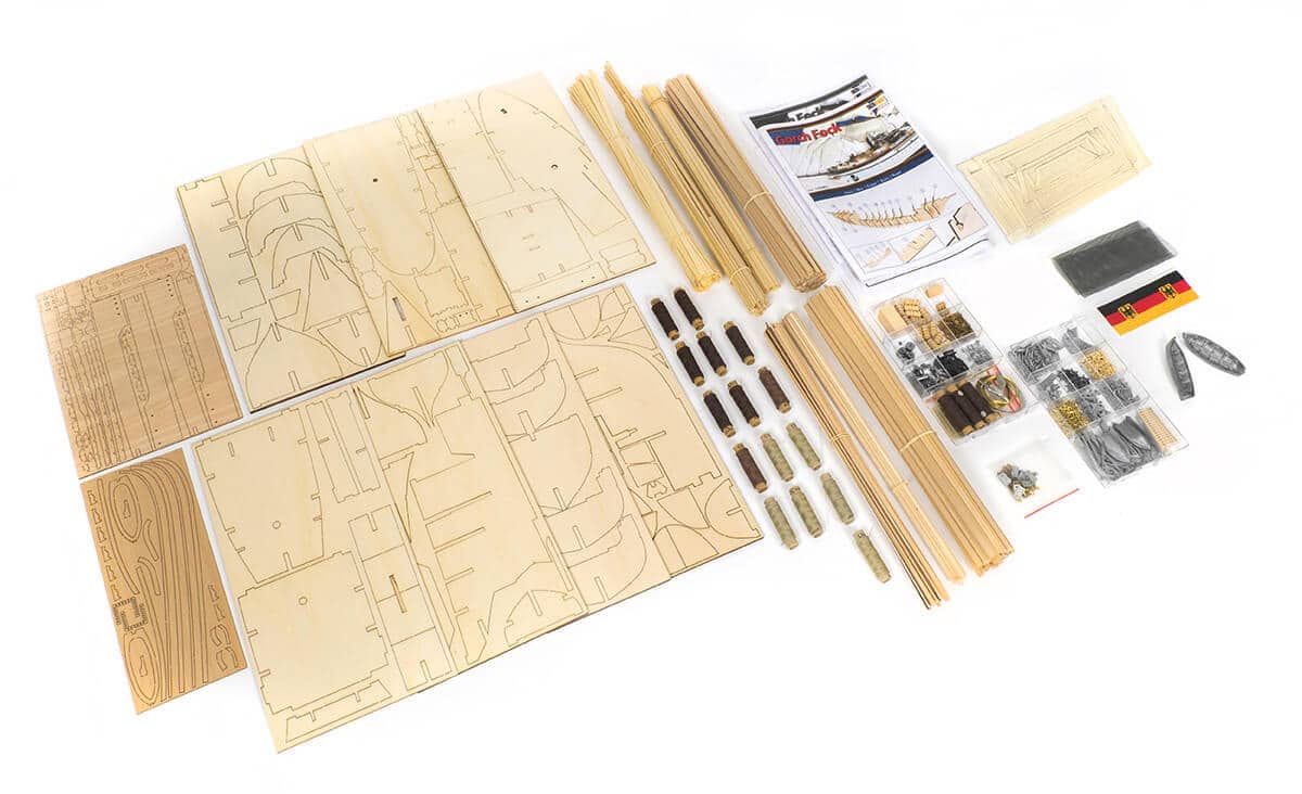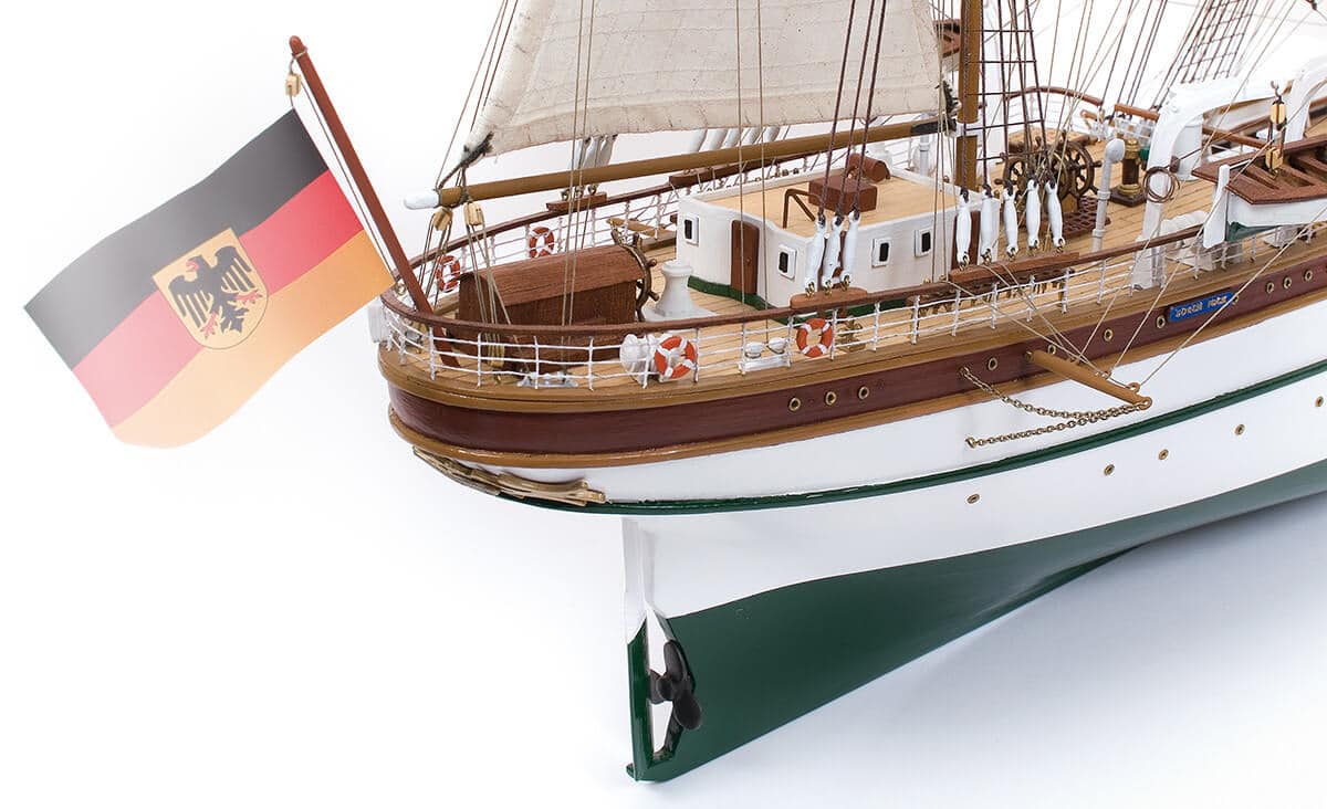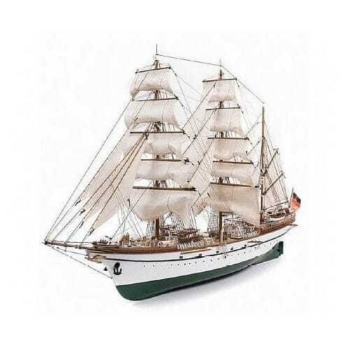 De Gorch Fock German Sailing Training Ship Model Ship Kit wordt vervaardigd door Occre Model Ship Kits & Occre Model Boat Kits. Ze gebruiken materialen van hoge kwaliteit, gemaakt met precisie en een grote mate van detail. Om een gemakkelijke, plezierige assemblage van scheepsmodelbouwpakketten te garanderen, gaan alle Occre houten scheepsmodelbouwpakketten vergezeld van gedetailleerde instructies, onderverdeeld in assemblagestappen met kleurenfoto’s. De kit bevat houten onderdelen en de romp is eenlaags beplankt.